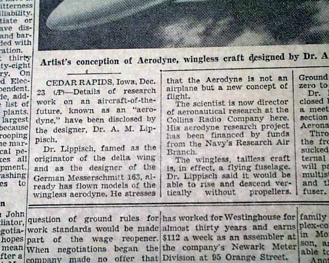 The top of the back page has a four column illustration with heading: "Details of Wingless, Tailles, Propelleress 'Aerodyne' Are Revealed" with text. (see images)