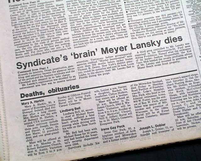 And page 4 has a heading: "Mob 'brain' Meyer Lansky dies at 80" with photo. (see images)