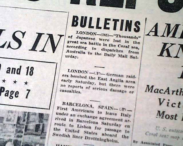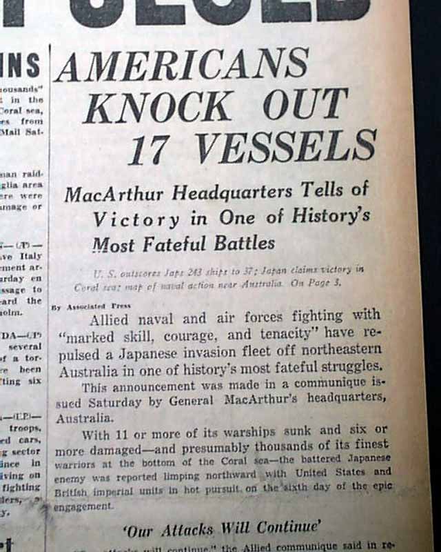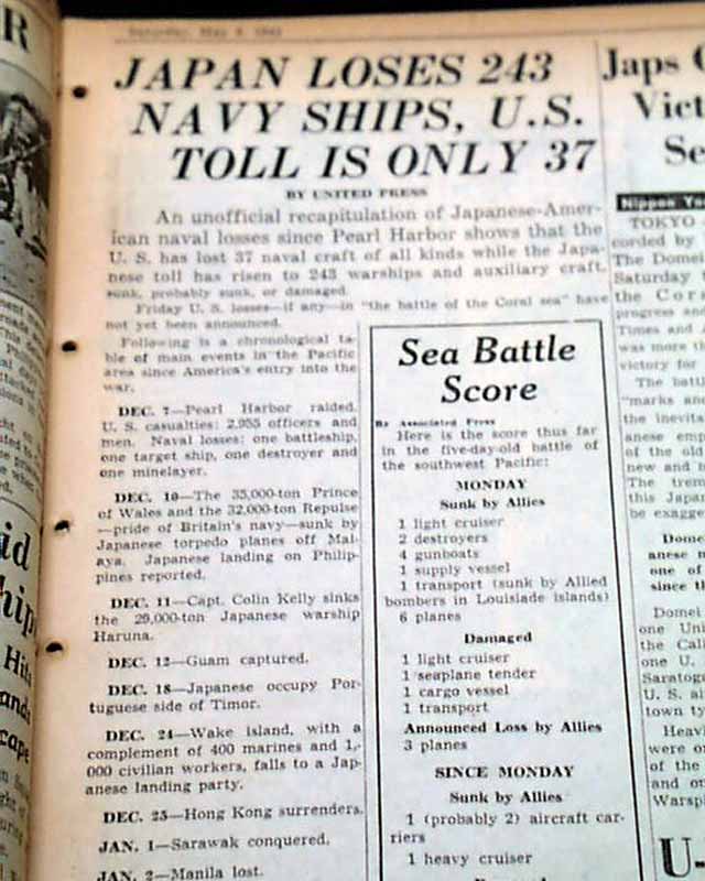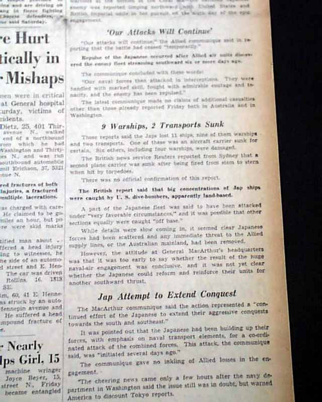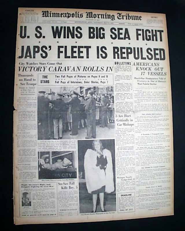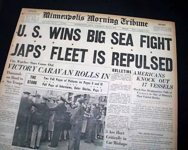 The front page has a great banner headline: "U. S. WINS BIG SEA FIGHT; JAPS' FLEET IS REPULSED" with subheads. (see images) Nice for display.