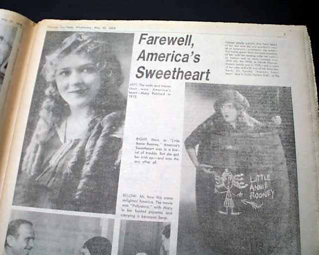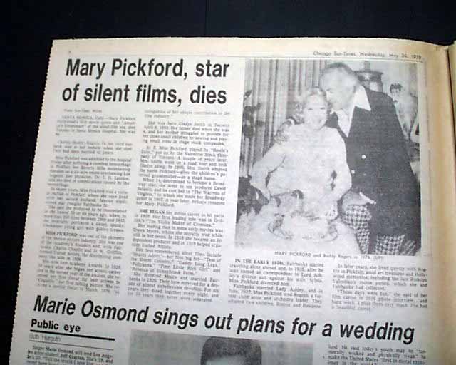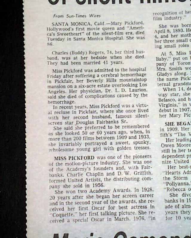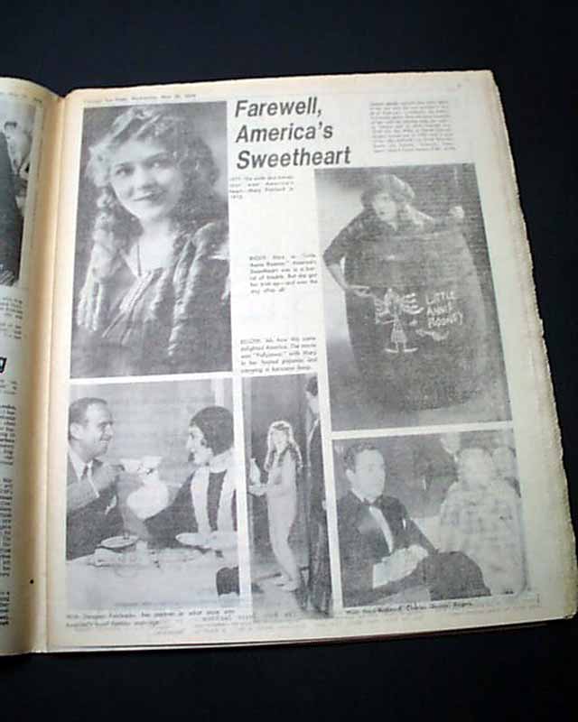 Pages 6 & 7 has more related photos with heading: "Mary Pickford, star of silent films, dies" (see images)