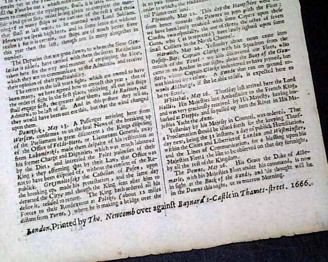 A newspaper from 1666, before the Great London Fire & during the Great Plague...