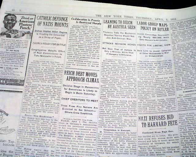 Certainly one of the more notable monster or creature searches in recent times is the Loch Ness Monster. Debate continues as to its existence. The top of page 12 has a small one column heading: "Monster Again Reported" with subhead. See image for brief report here.
