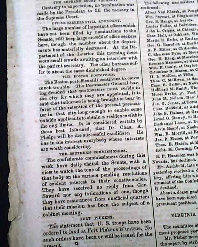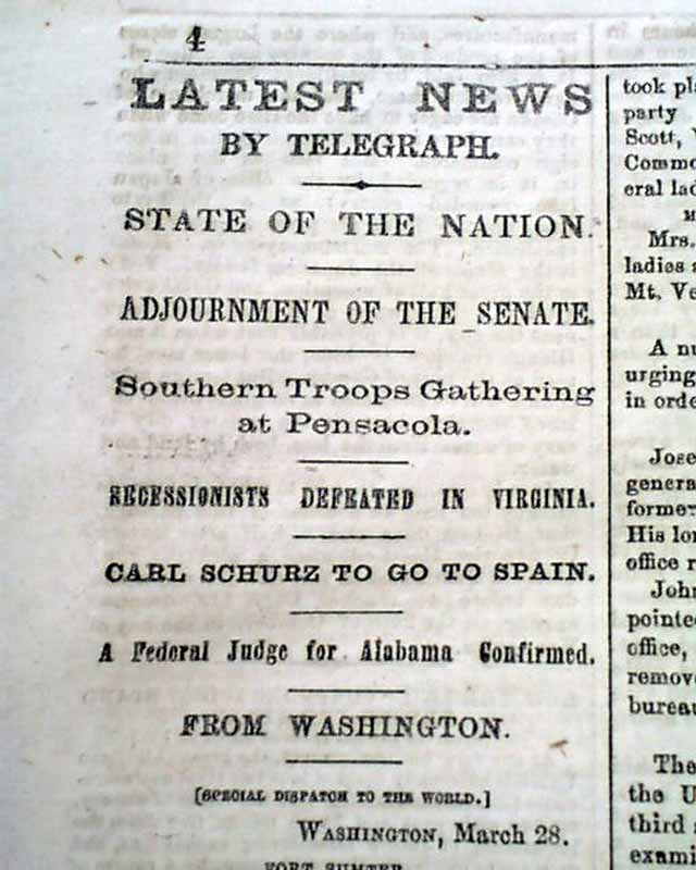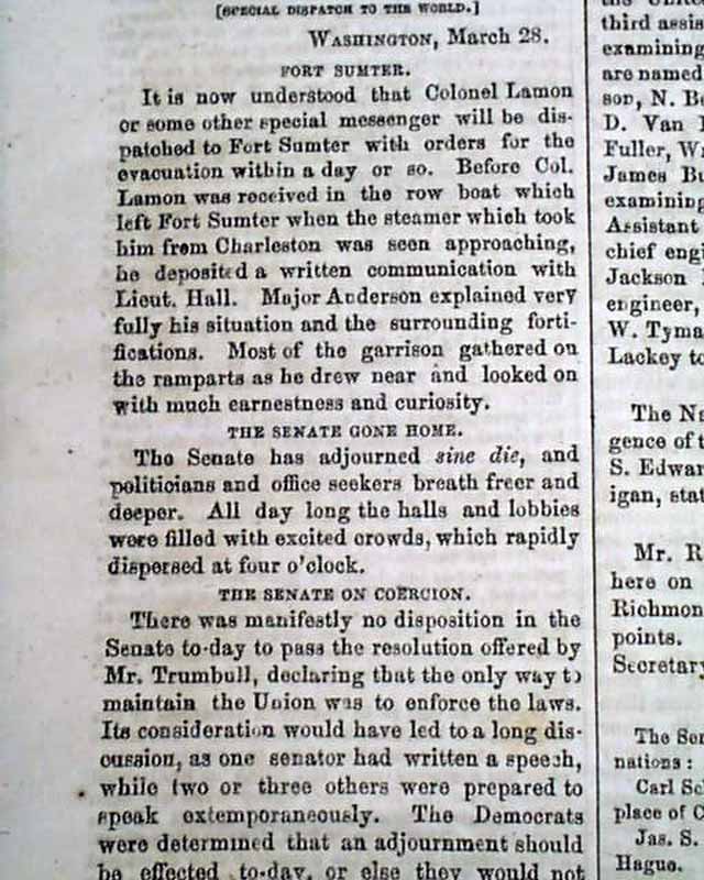 From just days before the outbreak of the Civil War, this issue has some reports on the impending conflict.