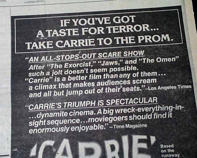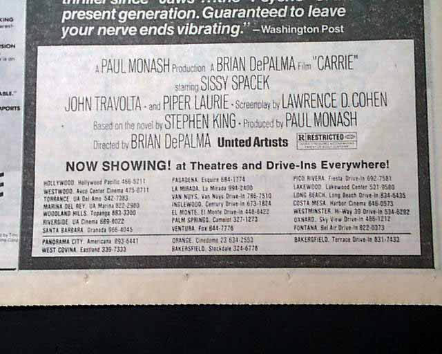 Review & premiere of "Carrie", in a Los Angeles newspaper...