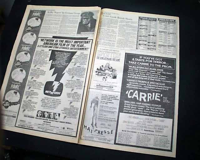 A nice issue on the premiere of the motion picture hit "Carrie" and perhaps no better issue could be found than this, the leading newspaper from the home of the entertainment industry - the Hollywood area's prime publication.