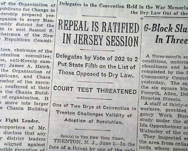 Ratification of the repeal of prohibition in New Jersey....