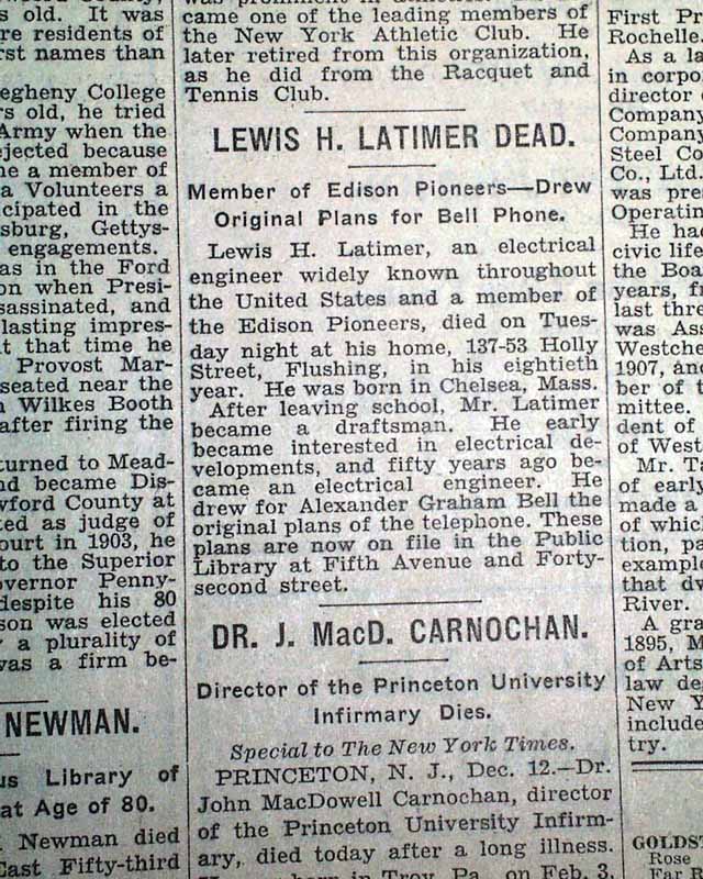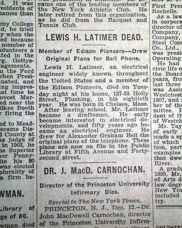 Black Americana: Lewis H. Latimer's death report - member of the Edison Pioneers...