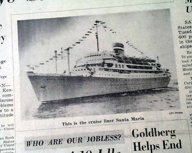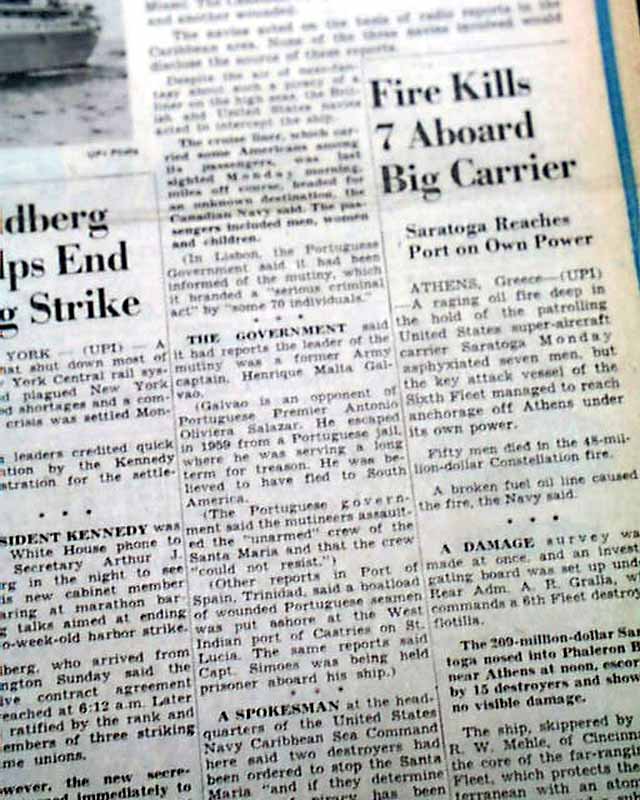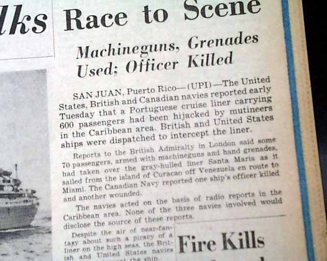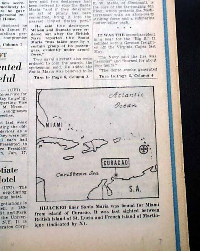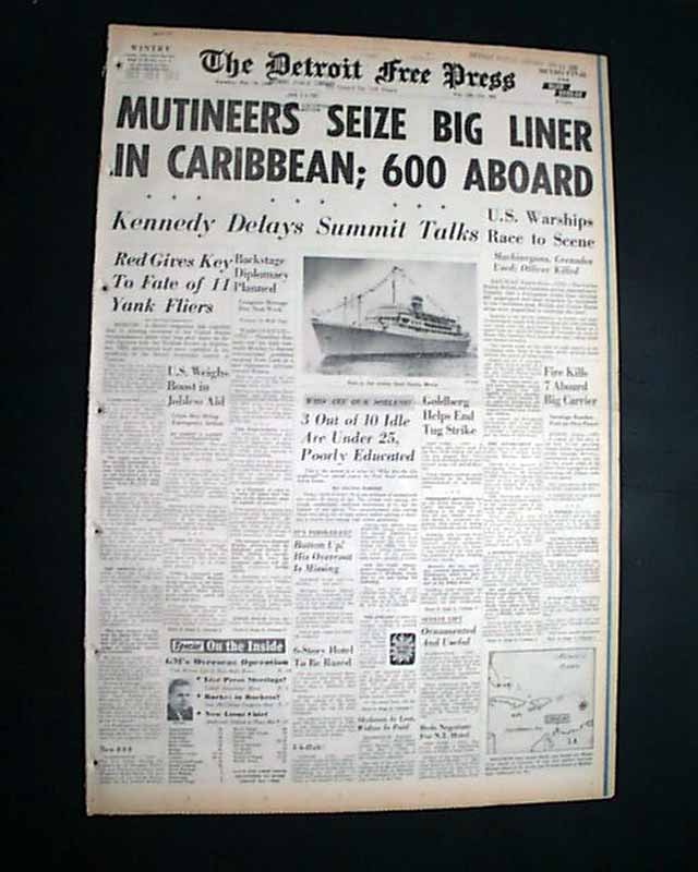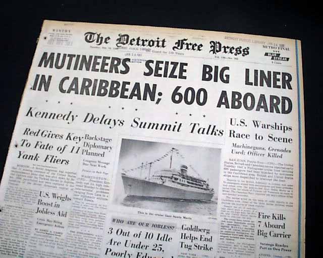 The front page has a banner headline: "MUTINEERS SEIZE BIG LINER IN CARIBBEAN; 600 ABOARD" with subheads, photo and related map. (see images) Nice for display.
