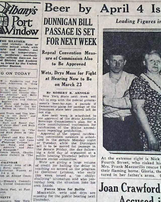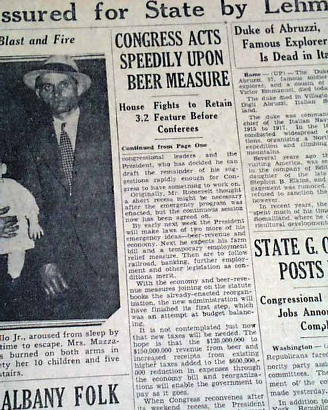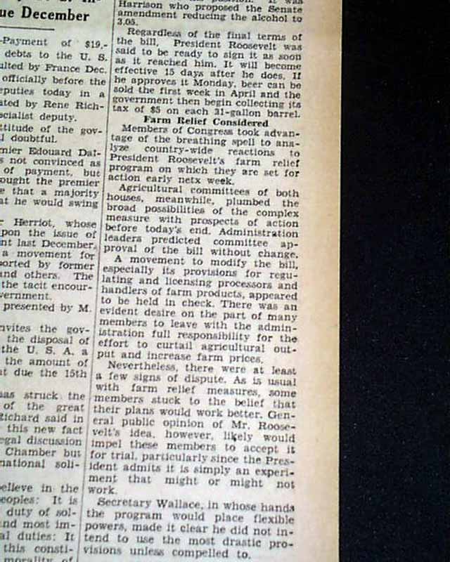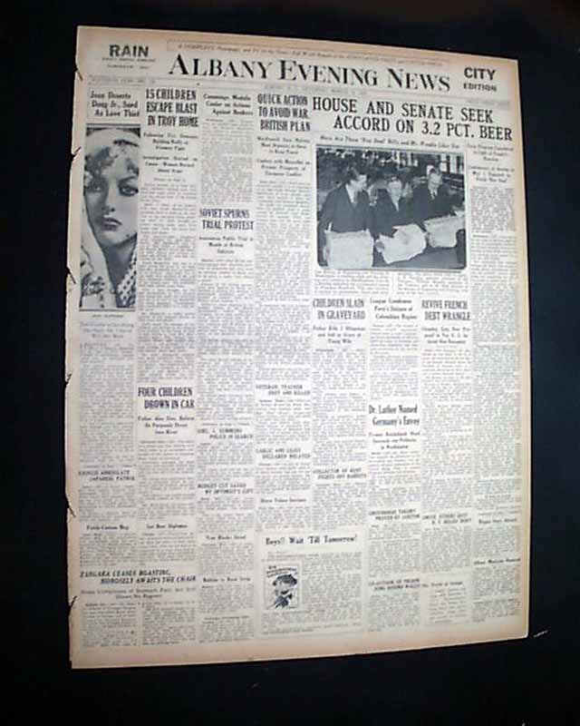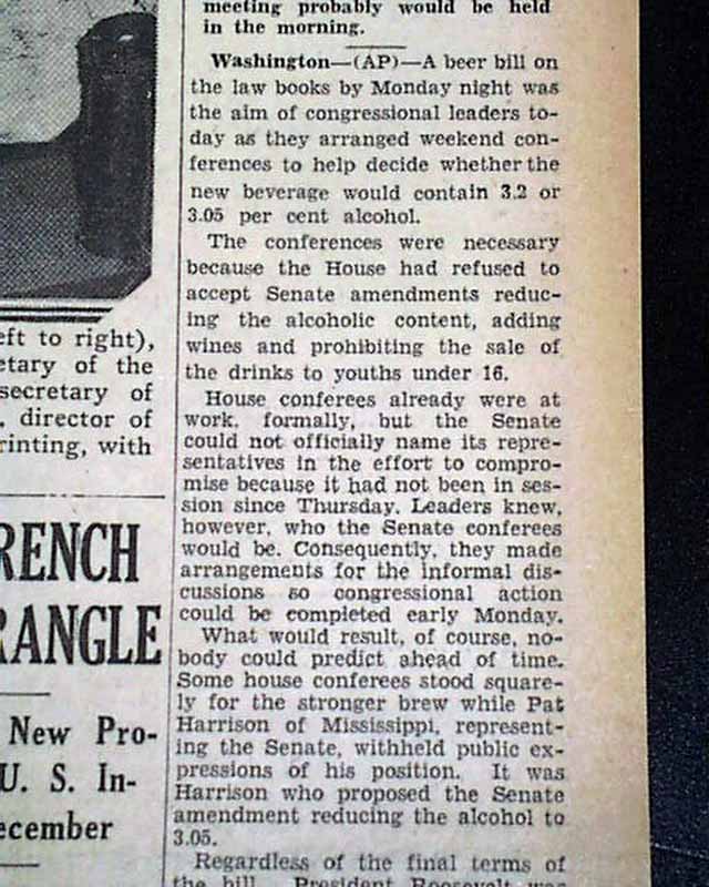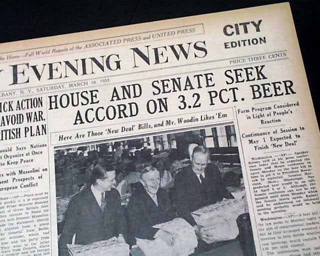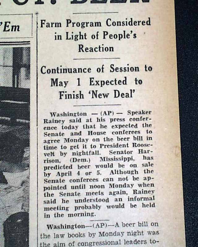 The top of the front page has a four column headline: "HOUSE AND SENATE SEEK ACCORD ON 3.2 PCT. BEER" with subheads. (see images)