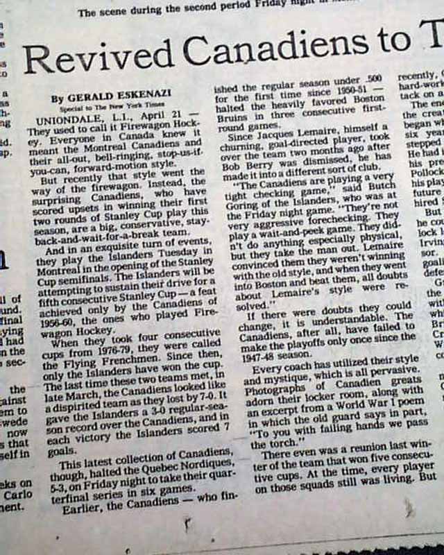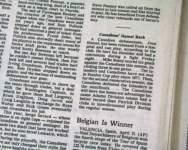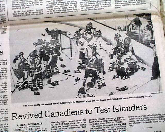 Page 18 has a four column photo showing the infamous NHL hockey brawl in progress with brief text. (see images)