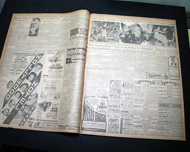 The top of page 13 has a banner heading: "Walt Disney Interprets a Classical of Fairyland in a $1,000,000 Screen Cartoon" with three animated scenes from the film. And the presiding page has an advertisement for the upcoming premiere at Radio City Music Hall. (see images)