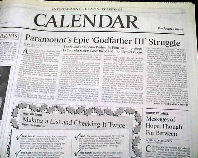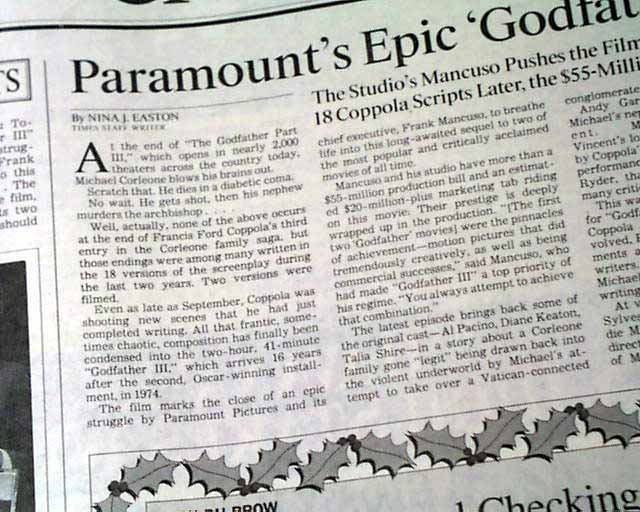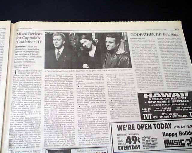Review & premiere of "The Godfather Part III", in a Los Angeles newspaper...