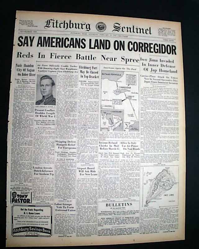 The front page has a nice banner headline on the re-capture of Corregidor by U.S. forces.