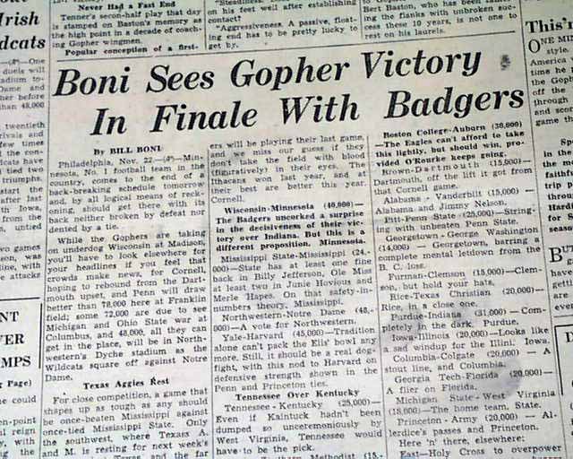 The top of the front page of the sport's section (page 13) has a banner headline: "DRY, FAST FIELD FOR GOPHERS" with subheads, three related photos and lineups.