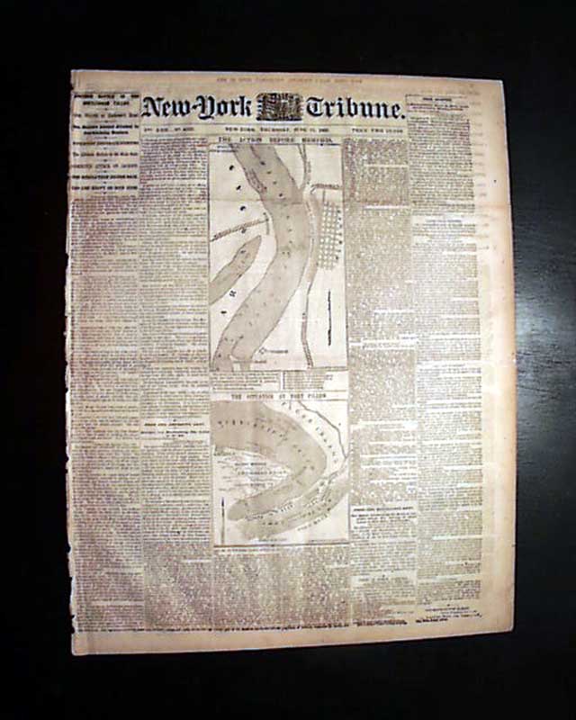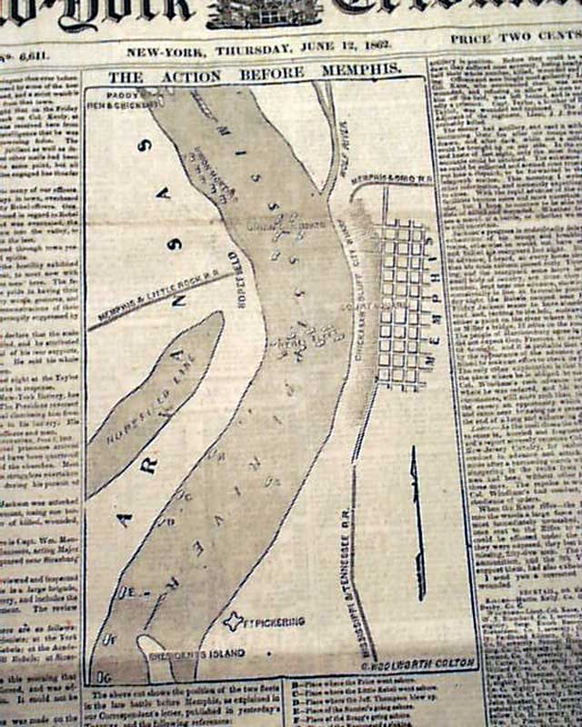 NEW YORK TRIBUNE, June 12, 1862  The front page has not one but two front page maps, headed: "The Action Before Memphis" and: "The Situation At Fort Pillow".
