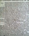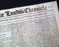 THE LONDON CHRONICLE, England, Nov. 23, 1776  Almost the entire front page is taken up with a continuation of: "A Series of Answers to certain Popular Objections against Separating from the Rebellious Colonists, and discarding them entirely; being a concluding Tract of the Dean of Gloucester on the Subject of American Affairs". The photos show about one-third of the front page text, which is "Objection IX" to which there are six answers. Fascinating reading.