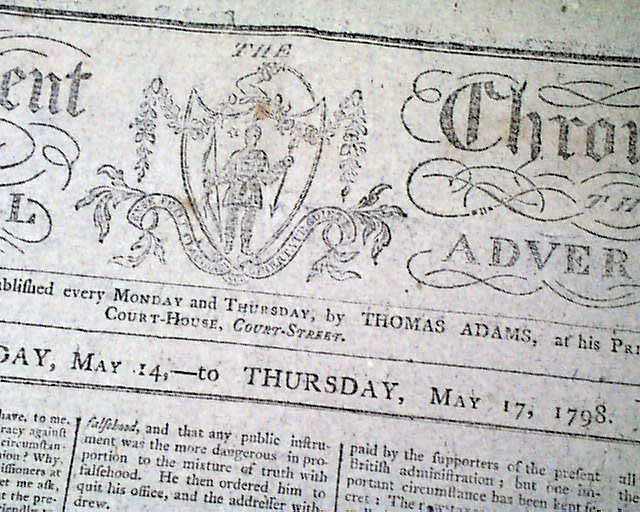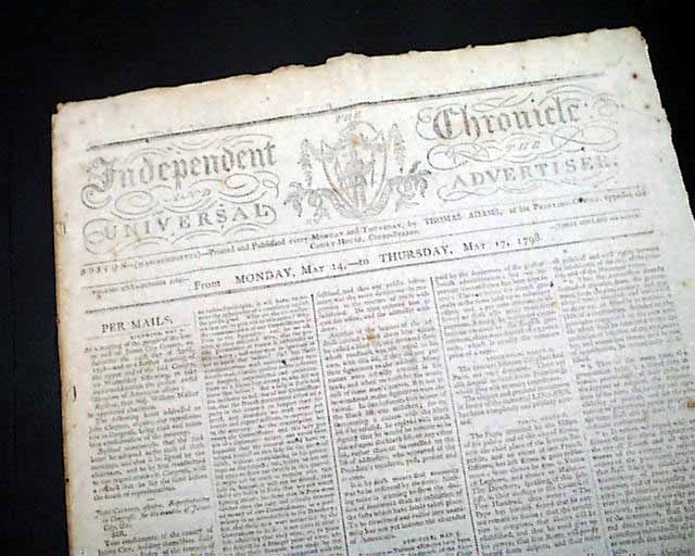 INDEPENDENT CHRONICLE & UNIVERSAL ADVERTISER, Boston, May 17, 1798