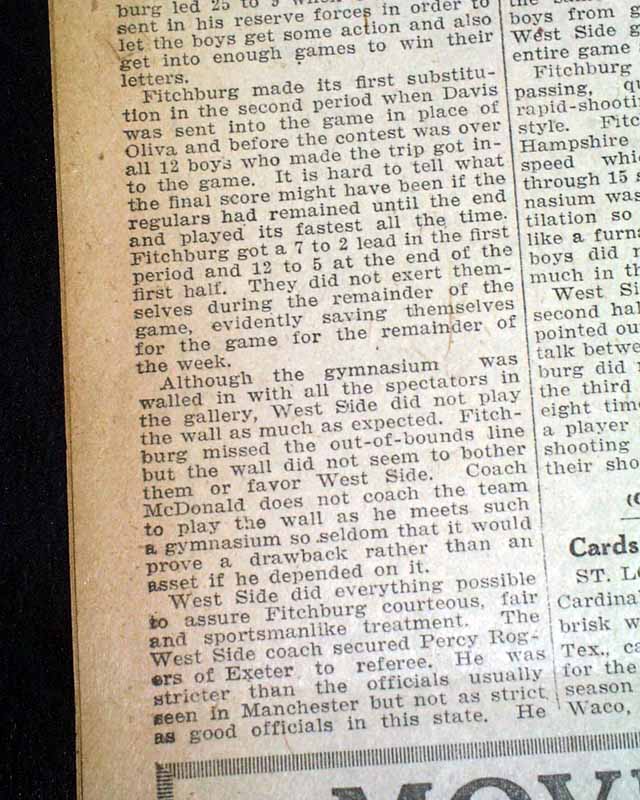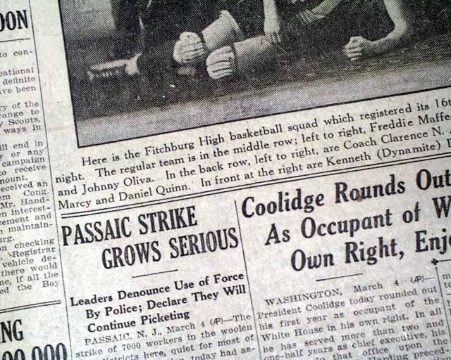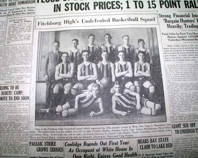 The front page has a nice four column photo showing the 1926 Fitchburg High School boys basketball team with heading: "Fitchburg High's Undefeated Basketball Squad" (see images)