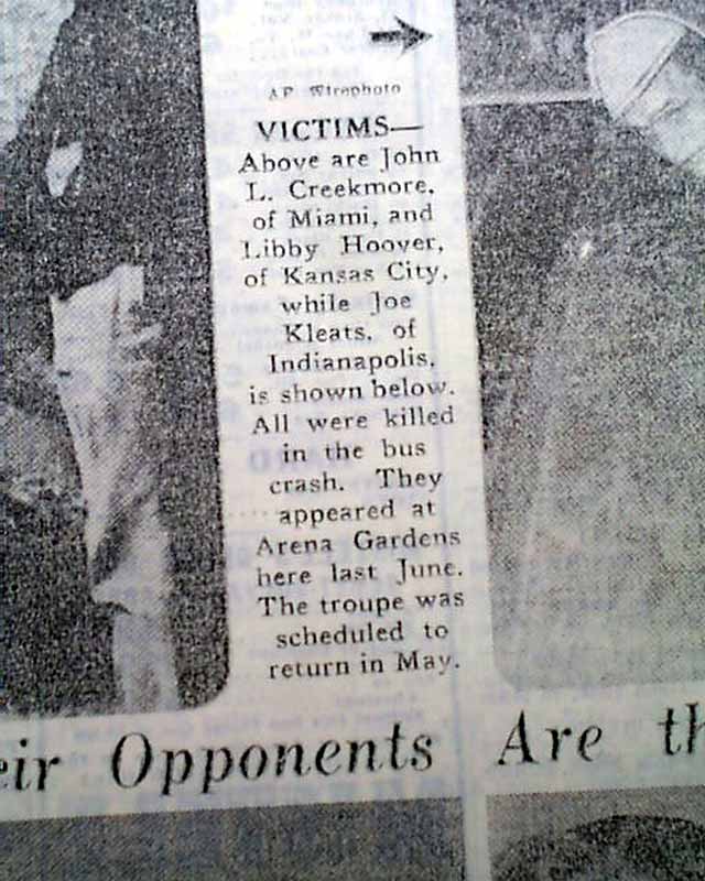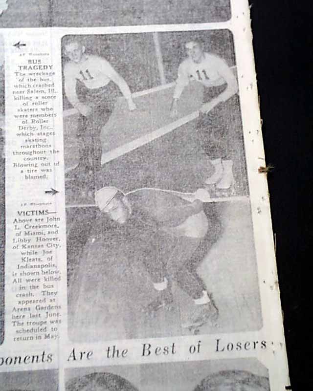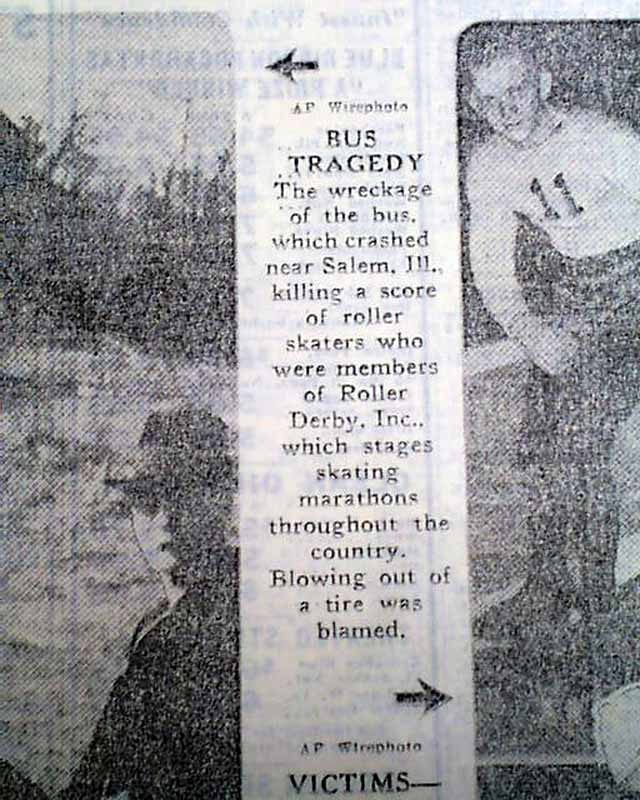 The back page has two related photos concerning the Salem, Illinois bus tragedy involving a roller derby troupe. See images with brief text.