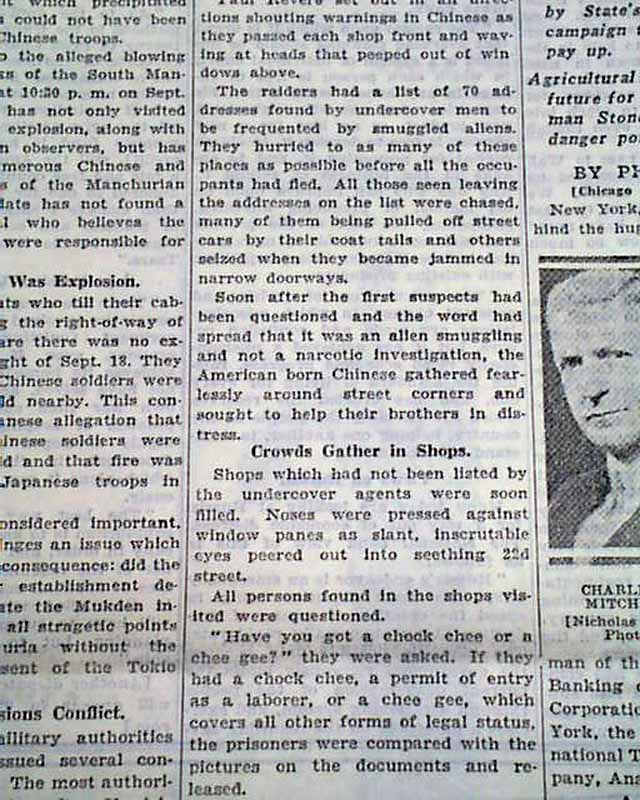 1931 illegal Chinese aliens immigration raids...