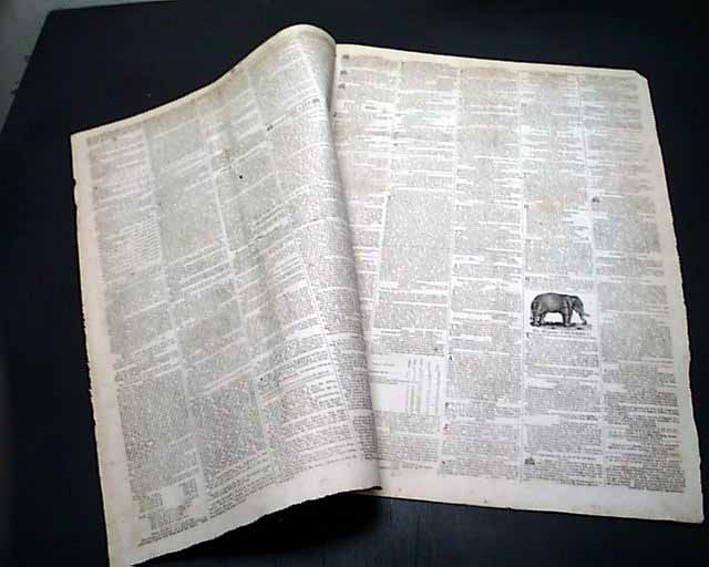 Page 3 has a 3 1/2 x 2 1/2 inch notice for an exhibition of "The Elephant Columbus", which includes an engraving of an elephant. The ad states, in part that: "The ELEPHANT is not only the largest and most sagacious animal in the world, but...with its trunk, is acknowledged to be the greatest natural curiosity ever offered to the public. The one now offered...is...the only one ever exhibited in America..."
