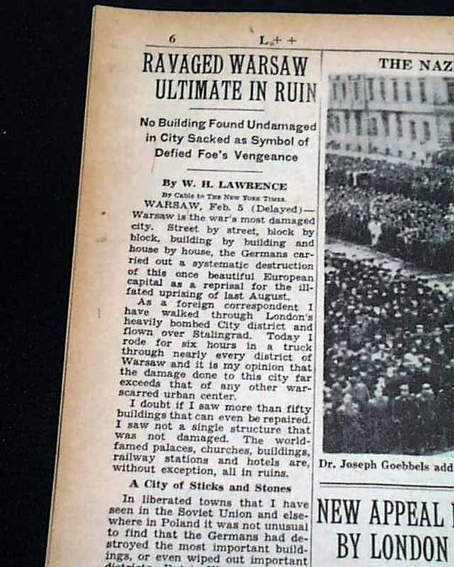 Page 6 has a small one column heading: "A New Nazi Pogrom Upset by Russians" (see images) Also a photo on the same page showing Nazi propagandist Joseph Goebbels addressing the home guard.