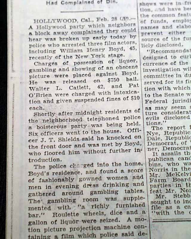 background: In 1931, William “Stage” Boyd, a character actor known for his Broadway and early Hollywood roles, became the subject of a widely publicized police raid in Los Angeles, reportedly linked to illegal drugs and other vice-related activities. The press seized on the story, printing sensational headlines and photographs of Boyd that emphasized a scandalous lifestyle. The trouble was that the public and many in the industry confused him with William “Hopalong” Boyd, the wholesome cowboy hero of the popular Western film series, who had no connection to the raid or any illicit behavior. This case of mistaken identity caused immediate reputational damage to “Hopalong” Boyd, with studio executives worried about audience perception and some delaying promotion of his films until the confusion was clarified. The incident highlighted both the aggressive nature of early tabloid reporting and the precariousness of Hollywood stardom, where a shared name could almost instantly imperil a carefully cultivated public image.