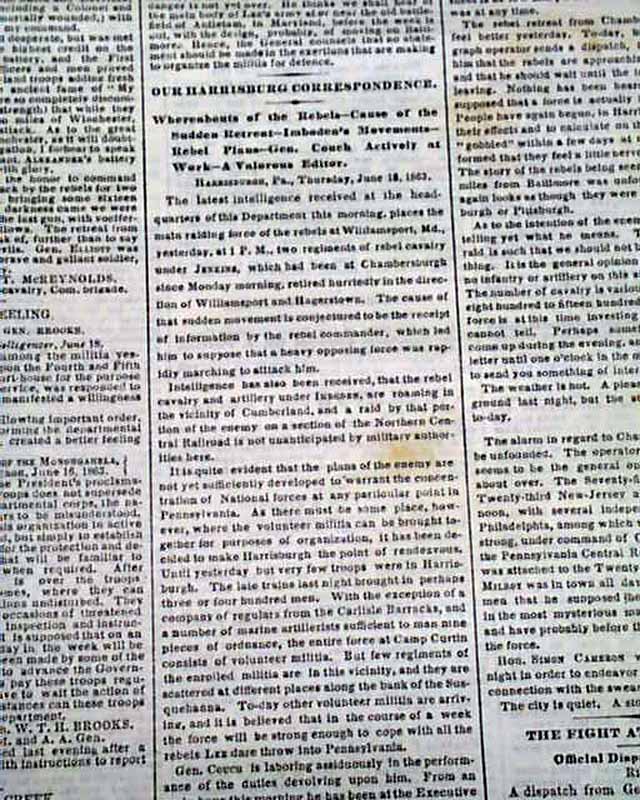 Fine coverage of the advance of the Southern forces into Penna., two weeks before the Battle of Gettysburg.