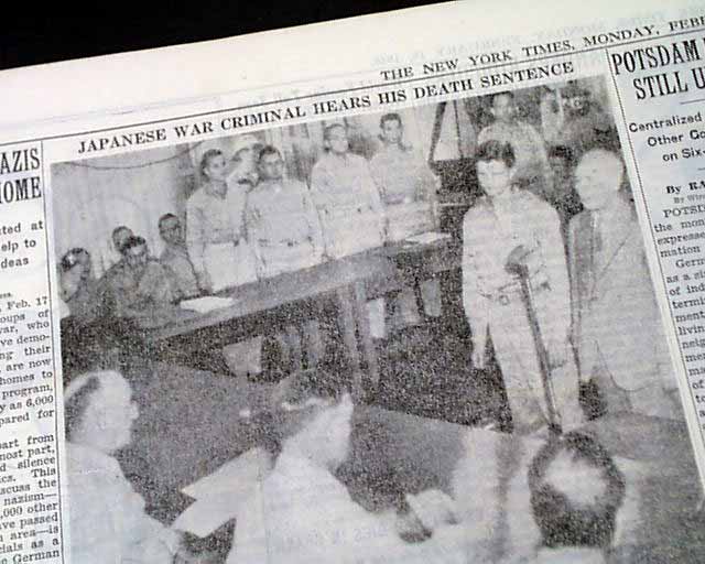Page 3 has a three column photo headed: "Japanese War Criminal Hears His Death Sentence" and brief text. (see images)