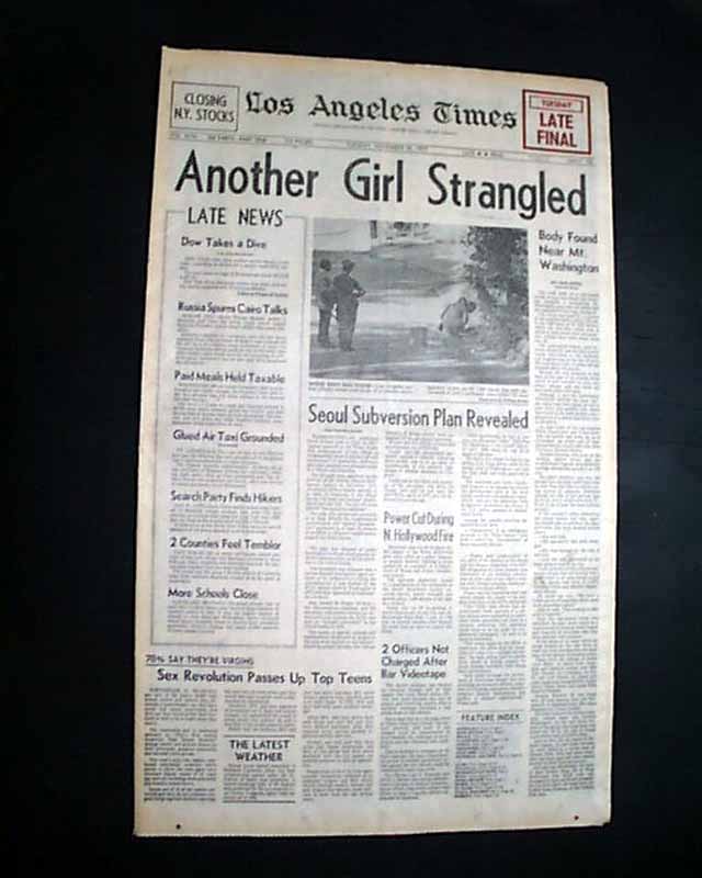 The front page has a nice banner headline for display: "Another Girl Strangled" with subhead and related photo. (see images) Great to have in this L.A. publication.