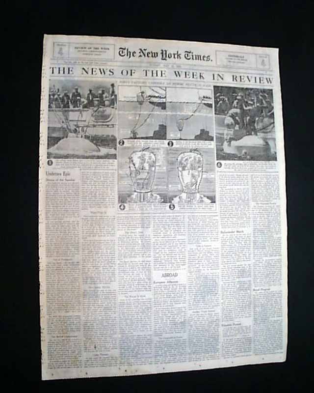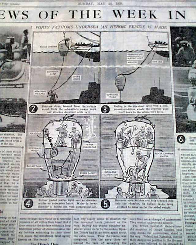The front page of this section has a nice banner pictorial with heading: "Fort Fathoms Undersea An Heroic Rescue Is Made" with smaller subheads.