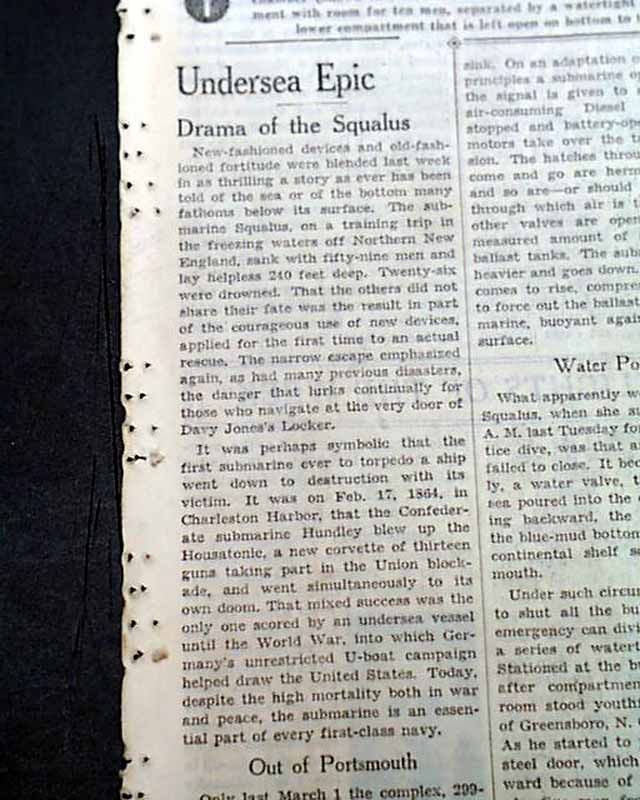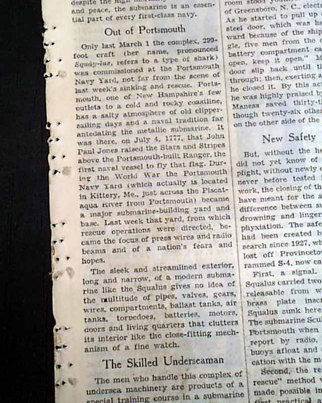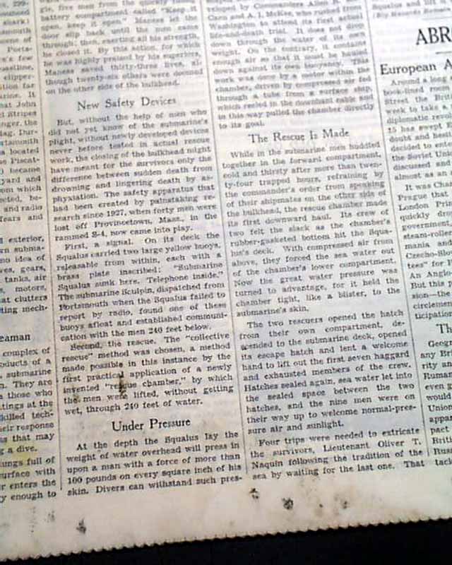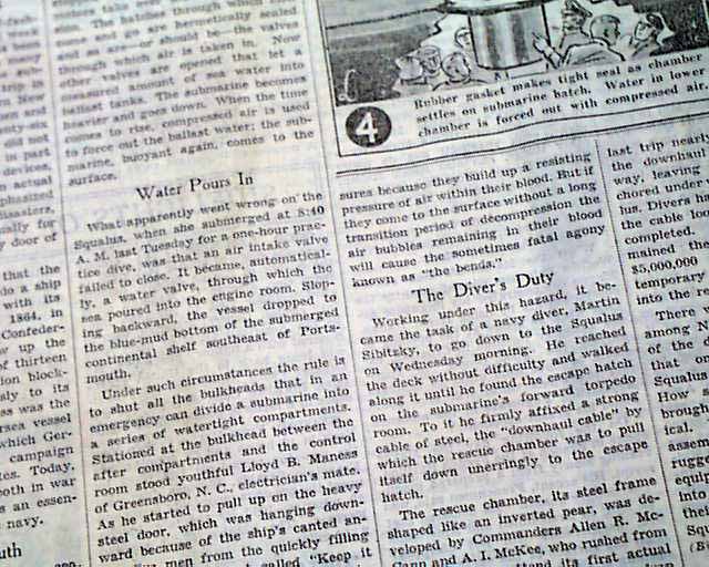 background: The USS Squalus sank during a test dive on May 23, 1939, off New Hampshire due to flooding from a valve failure, killing 26 crew members. A groundbreaking rescue using the McCann Rescue Chamber saved 33 survivors. The submarine was later raised, repaired, and recommissioned as the USS Sailfish, serving in World War II.