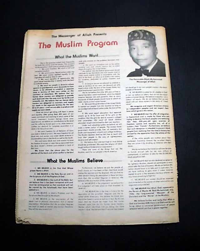 A box within the masthead has: "Dedicated to Freedom, Justice and Equality for the so-called Negro. The Earth Belongs to Allah."