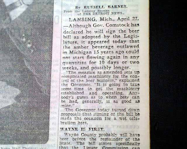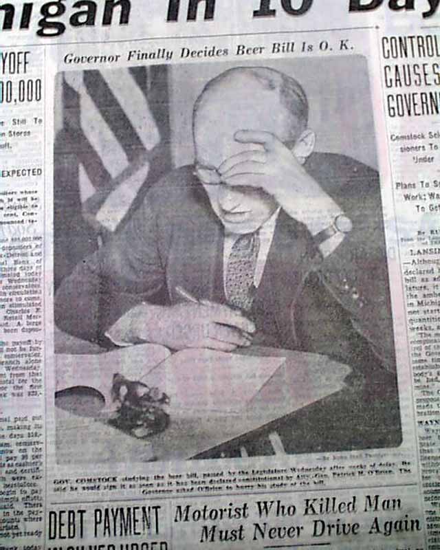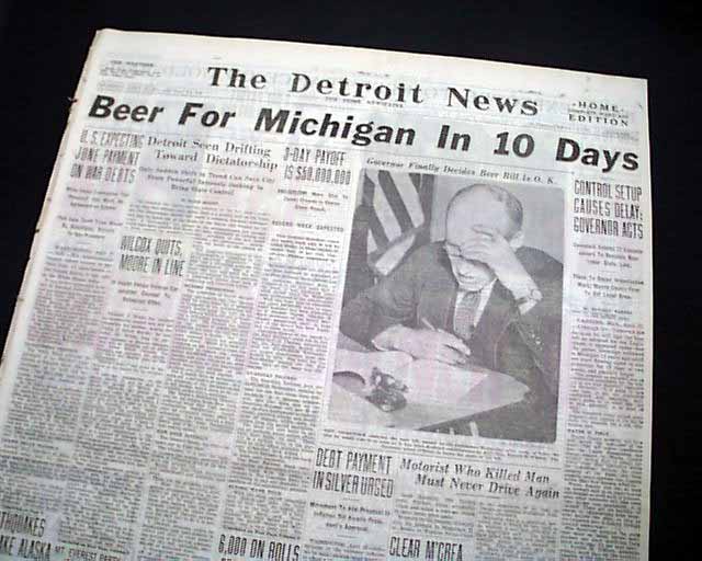 The front page has a nice banner headline for display: "Beer For Michigan In 10 Days" with subheads and photo of the governor signing. (see images)