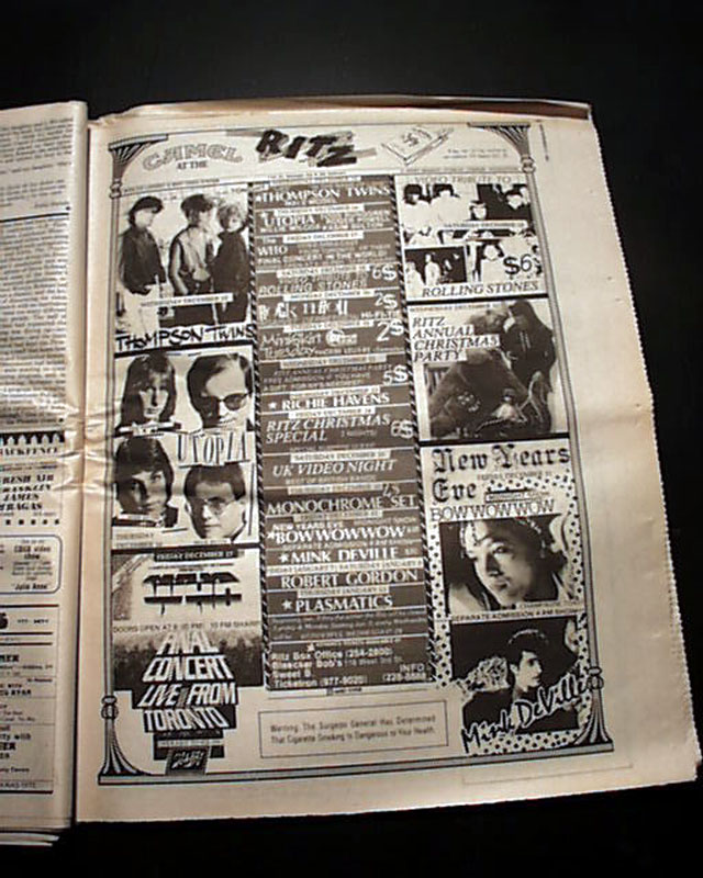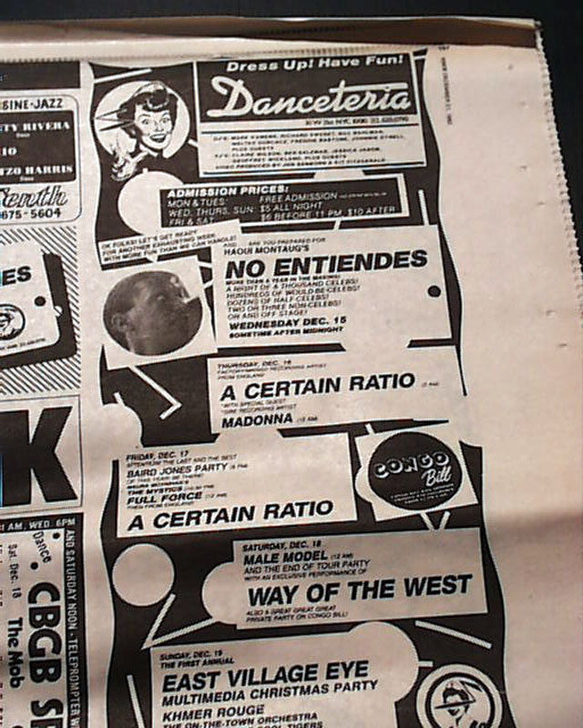 Page 137 has a advertisement for upcoming performances at the Danceteria nightclub in New York City with a midnight performance by a very young "Madonna". (see images) Of course this mention of her is small and discrete here because she was still unknown at the time. See the following description of this legendary performance below.