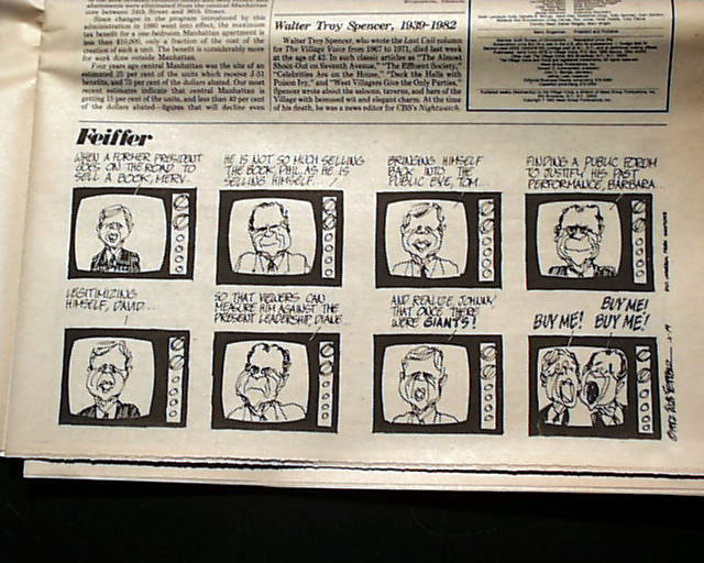 The Village Voice was an American counterculture newspaper known for being the country's first alternative newsweekly. It introduced free-form, high-spirited, and passionate journalism into the public discourse - a tradition it maintained throughout its 60+ year history. It is quite common to find great political cartoons, satirical cartoons and articles, thought-provoking editorials, and ads and reviews for both concerts and theater productions - both on and off Broadway. Many iconic writers and musicians credit their appearance in The Village Voice for at least a portion of their success.