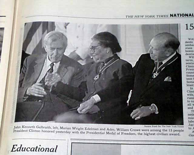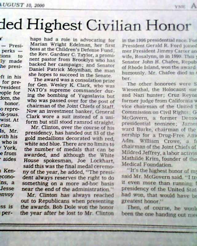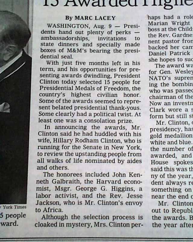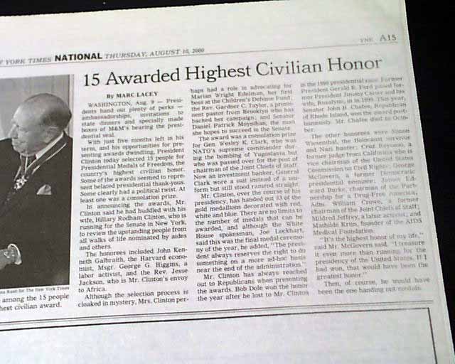 The top of page 15 has a three column heading: "15 Awarded Highest Civilian Honor" with related photo. Text includes: "...the Rev. Jesse Jackson, who is Mr. Clinton's envoy to Africa" (see images)