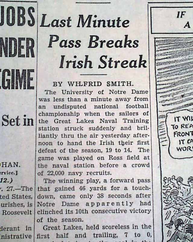 Home > 1943 Notre Dame Fighting Irish football upset loss...
