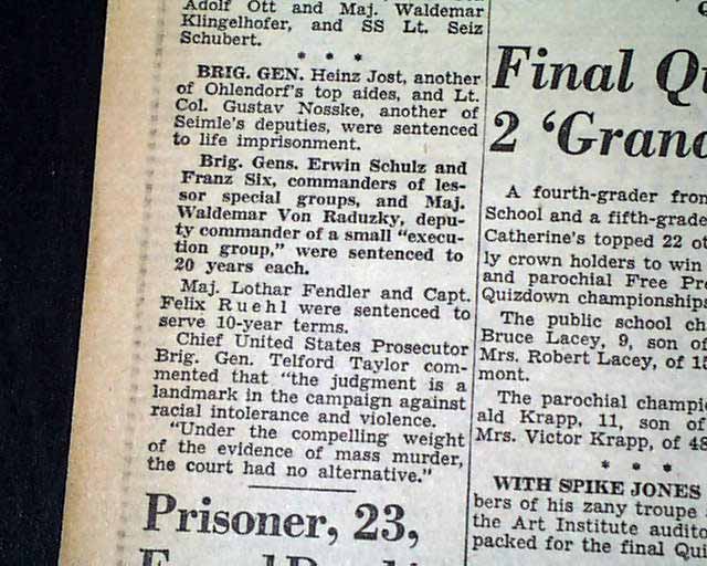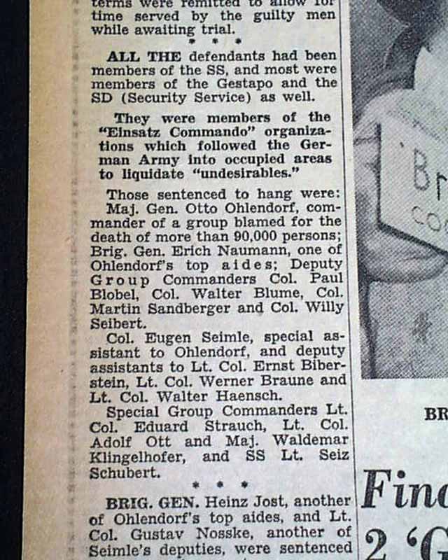 1948 Einsatzgruppen trial... SS officers sentenced...