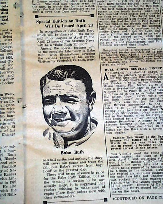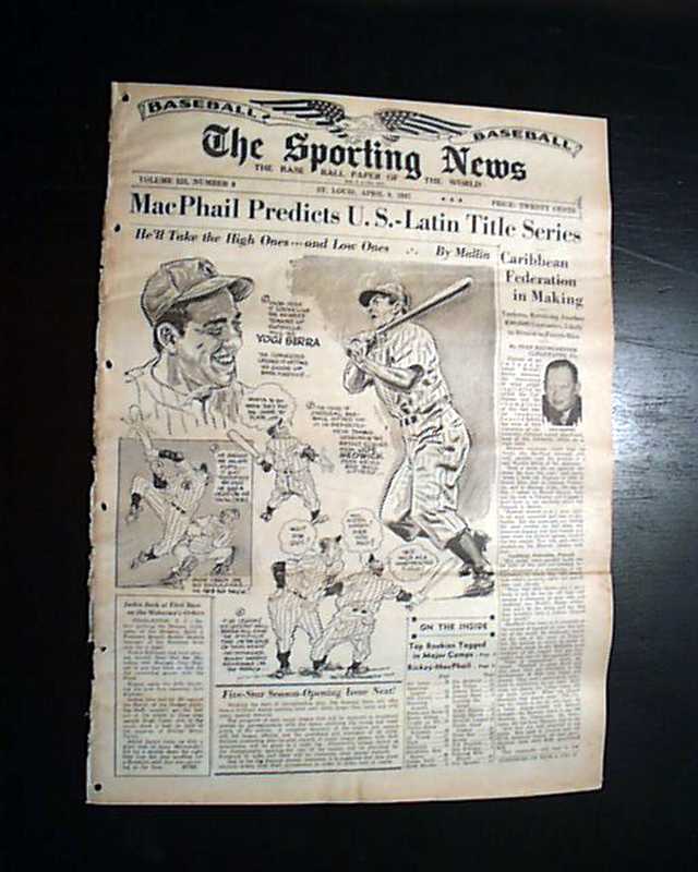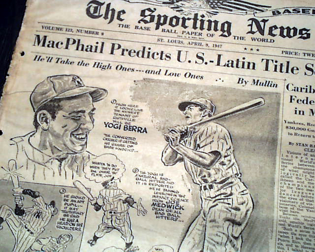 Other photos within this issue include Ted Williams, Larry (Yogi) Berra, his first full year as a Major Leaguer; Connie Mack, Tris Speaker, Cy Young, Joe Tinker & Babe Ruth (an illustration) among others.