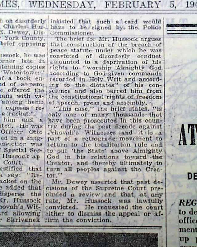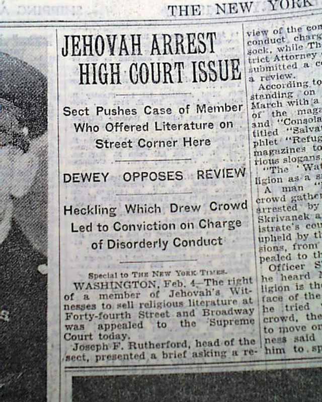 Jehovah's Witnesses and distribution of literature in the 1940's...