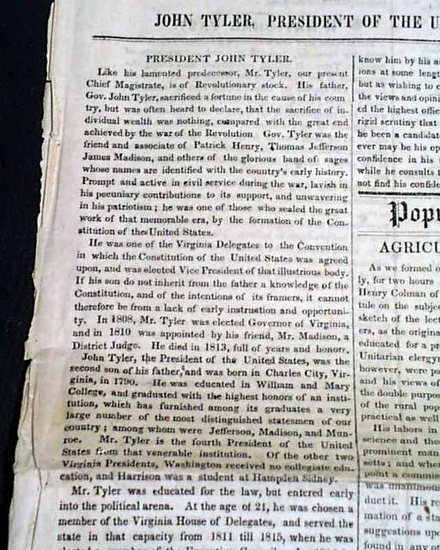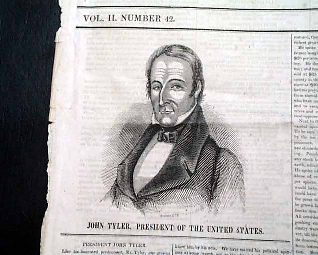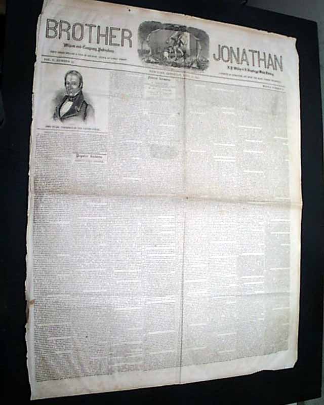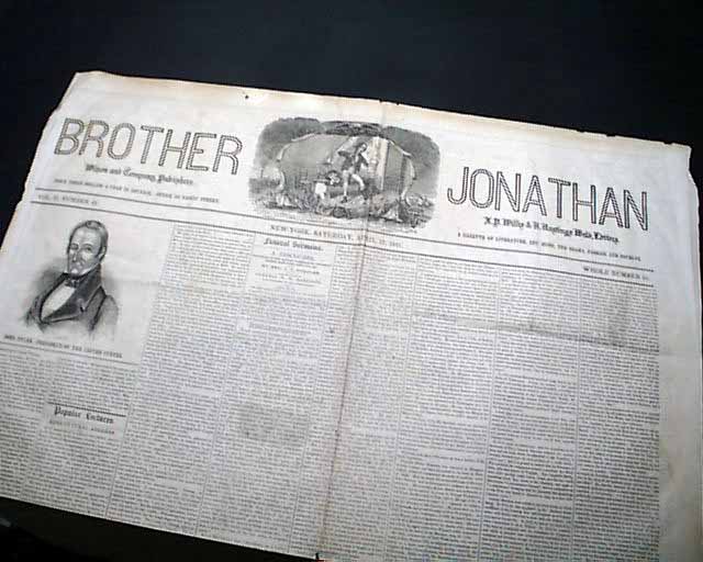 BROTHER JONATHAN, New York, April 17, 1841 The front page has "Funeral Sermons" concerning to the funeral of former President William H. Harrison. There is also a large portrait of the current President, John Tyler. Nice masthead.