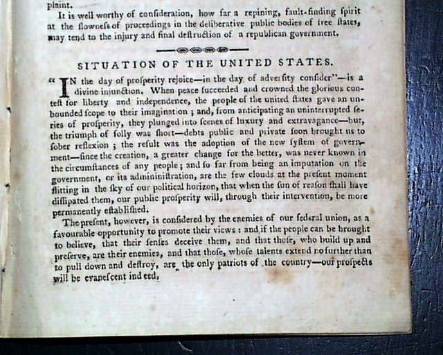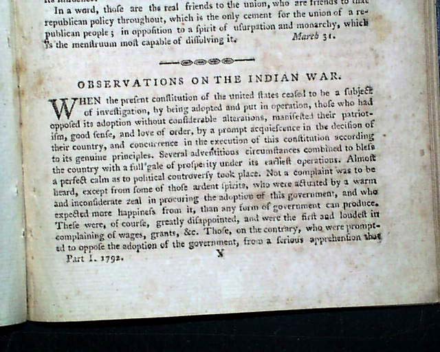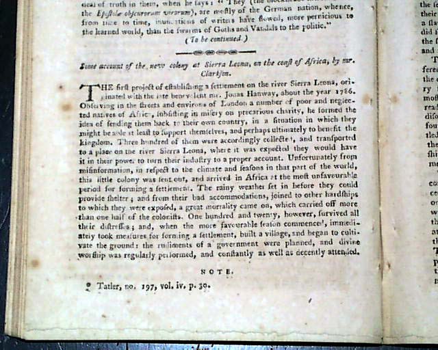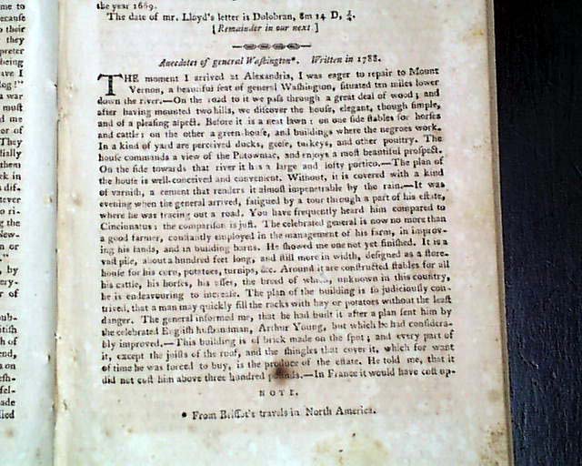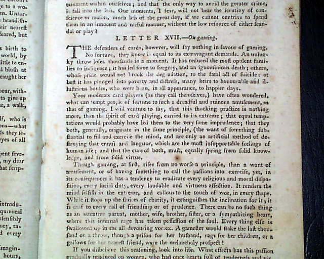 Additional content includes: "Reflections on the State of the Union", a series of "Letters to a Young Lady - On Politeness - On Exercise & Relations - On Public Pleasures - On Visiting, Tea Parties - On Card Playing - On Gaming" "Anecdote of General Washington" "Account of the New Colony at Sierra Leone, on the Coast of Africa" "North-Western Posts" "Observations on the Indian War" "Government of the United States" and more.