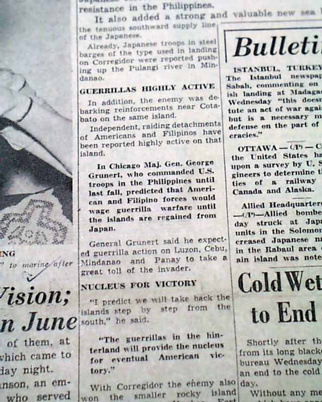 The front page has a four column heading: "JAPS HUNT FOR GUERRILLA BANDS ON THE PHILIPPINES" with subhead. (see images)