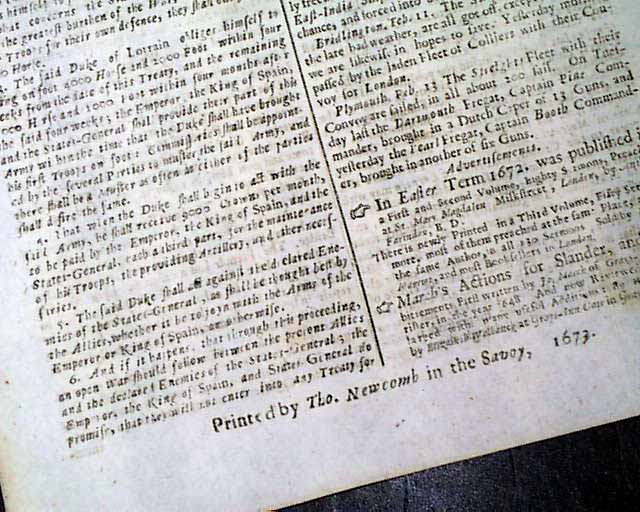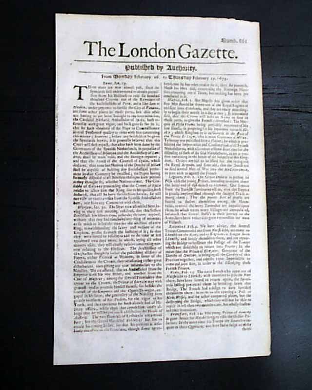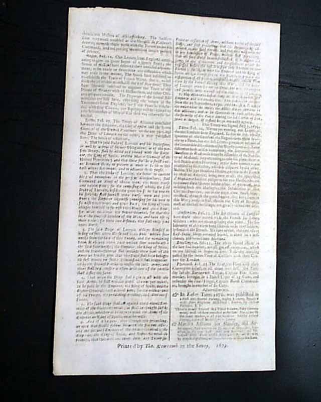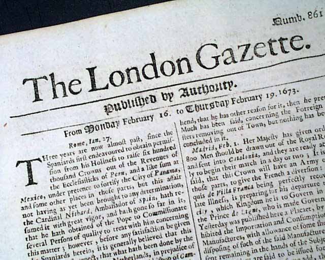 Genuine London Gazette original from 1673...