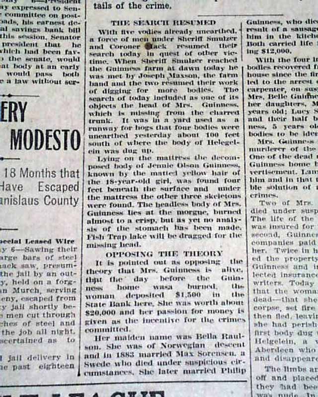 The top of the front page has a 3 1/2 column headline: "GHASTLY Evidence Found Of Wholesale MURDER" with subhead. (see images). Surprisingly this issue is in good condition being from the "wood pulp" era. Very hard to find issues that are not totally fragile from this era in paper.