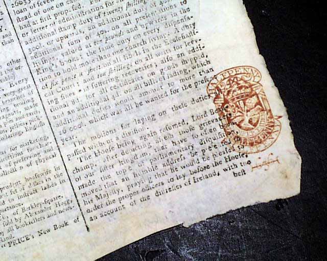 Newspapers from England during the time of the Revolutionary War are always interesting as they give a sense as to life at that time and what political discussions were the "hot topic" of the day. Red tax stamp on page 3.