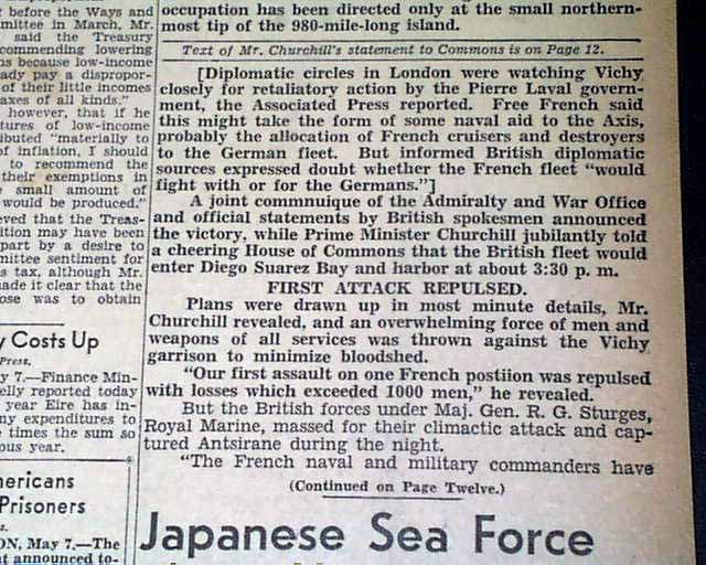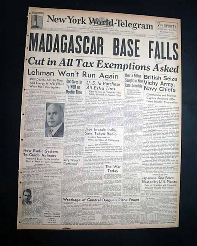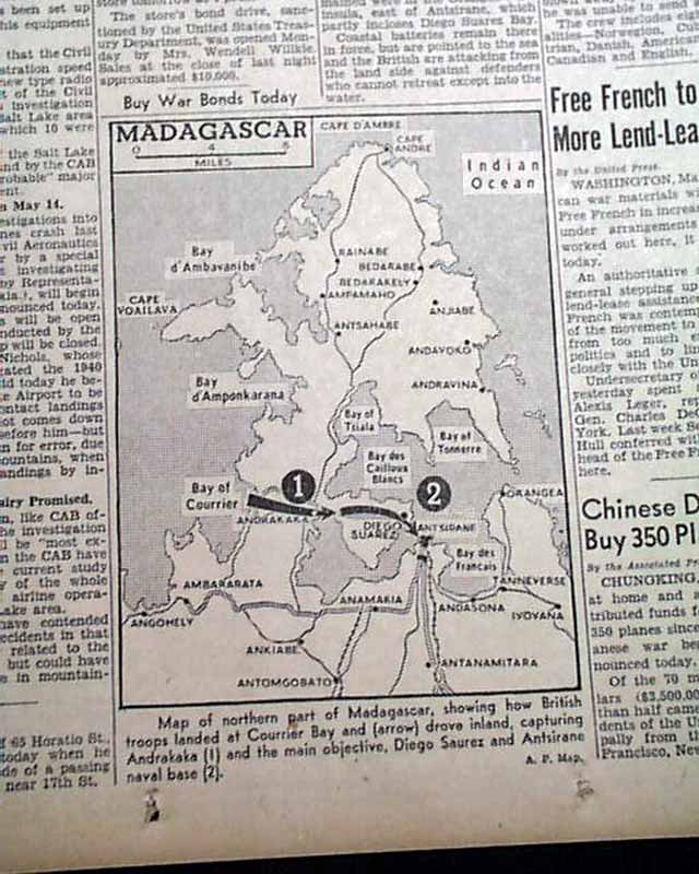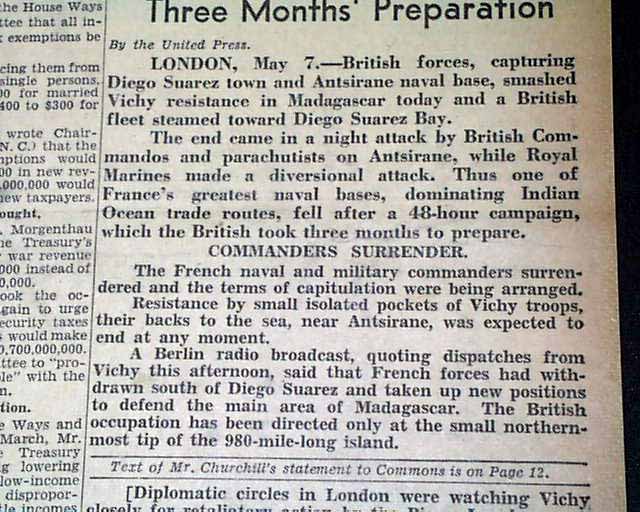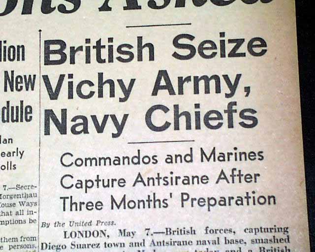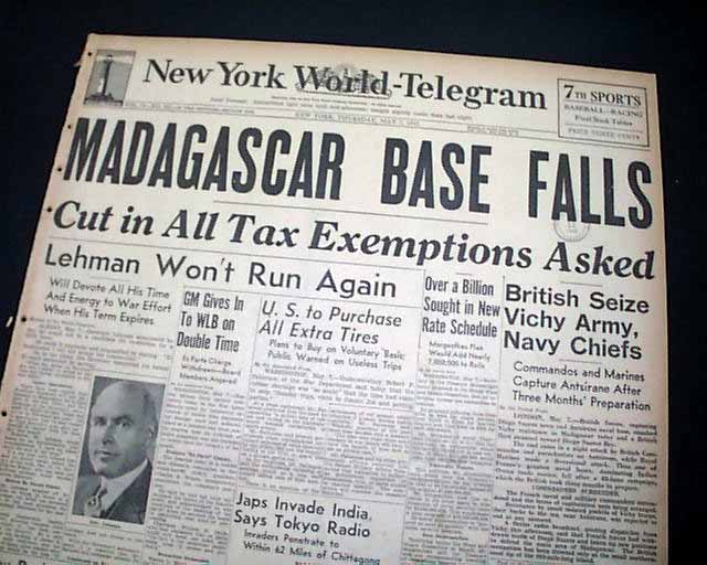The front page has a nice banner headline: "MADAGASCAR BASE FALLS" with subheads. (see images) Nice for display.