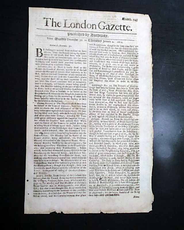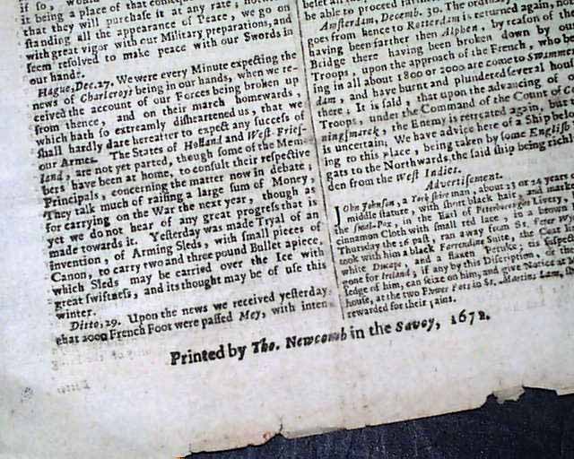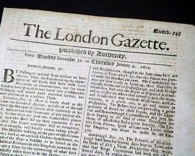Genuine London Gazette newspaper from 1672...