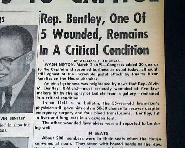 background: On March 1, 1954, four Puerto Rican nationalists—Lolita Lebrón, Rafael Cancel Miranda, Irvin Flores Rodríguez, and Andrés Figueroa Cordero—opened fire from the Ladies' Gallery of the U.S. House of Representatives, turning a routine legislative debate into a scene of chaos. Shouting for Puerto Rican independence and unfurling the island's flag, the group discharged approximately 30 rounds from semi-automatic pistols onto the House floor, wounding five congressmen: Alvin Bentley, Clifford Davis, Ben Jensen, George Fallon, and Kenneth Roberts. While the attackers claimed their intent was to bring global attention to Puerto Rico’s colonial status rather than to kill, they were quickly apprehended and sentenced to decades in prison for assault and seditious conspiracy. The incident remains one of the most dramatic acts of political violence in U.S. history, ultimately concluding in 1979 when President Jimmy Carter granted the group clemency, a move that remains a point of historical debate regarding the intersection of political activism and domestic terrorism.